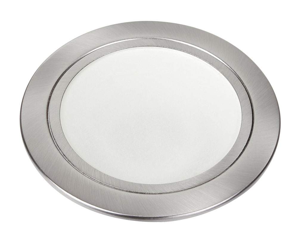 LUMINARIO EMPOTRADO FIJO 50W 100-127V MR16, ACERO SATINADO, PANTALLA DE CRISTAL PERLADO