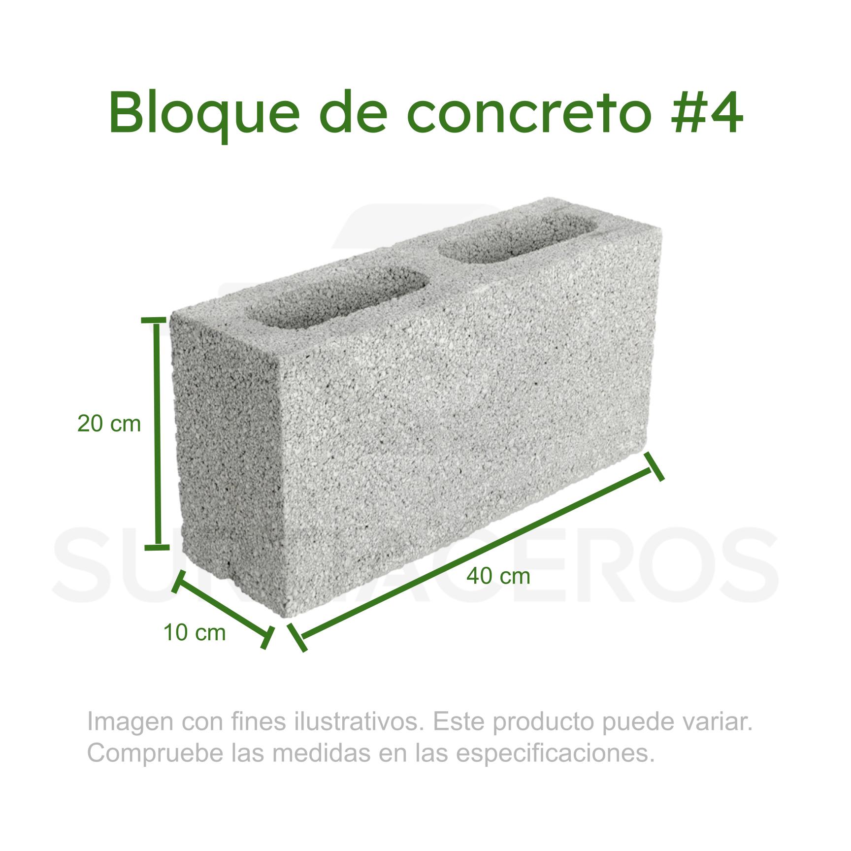 Bloque de concreto estándar con dimensiones de 10 cm de ancho, 20 cm de alto y 40 cm de largo. Fabricado para aplicaciones de mampostería.