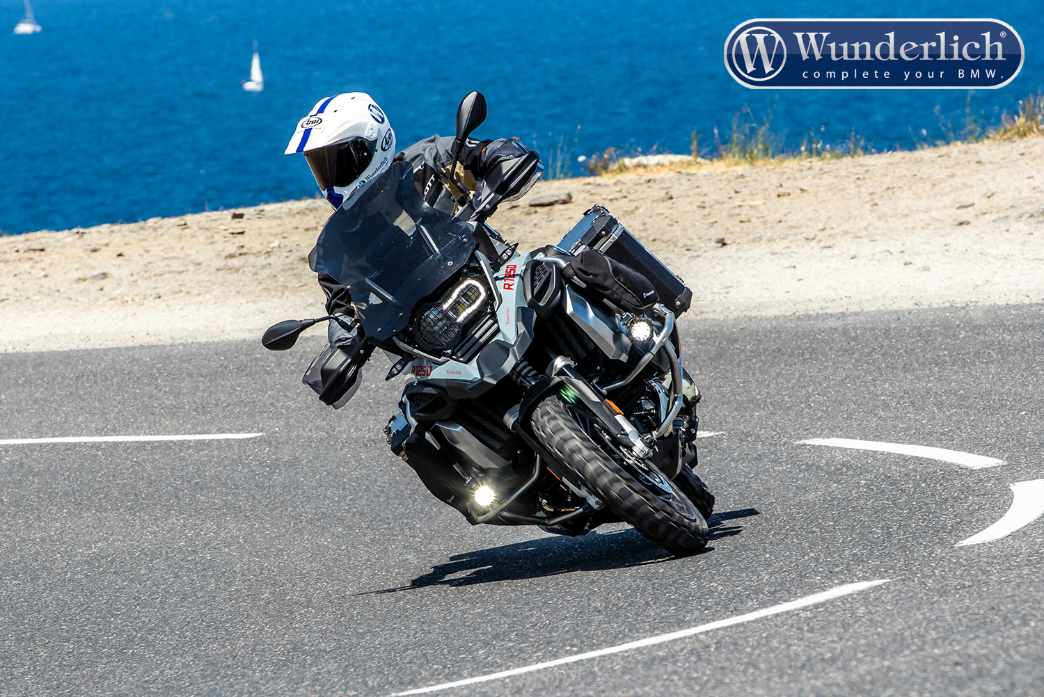 La forma triangular de la chapa de aluminio le permite abarcar toda la superficie entre nuestra barra de protección para depósito 41873-200 y la barra de protección para depósito Adventure sin tapar el logotipo de la marca BMW, ubicado sobre el depósito. Además, gracias a su estética marcadamente técnica, realza la estructura de la barra de protección y proporciona una mayor estabilidad estructural.