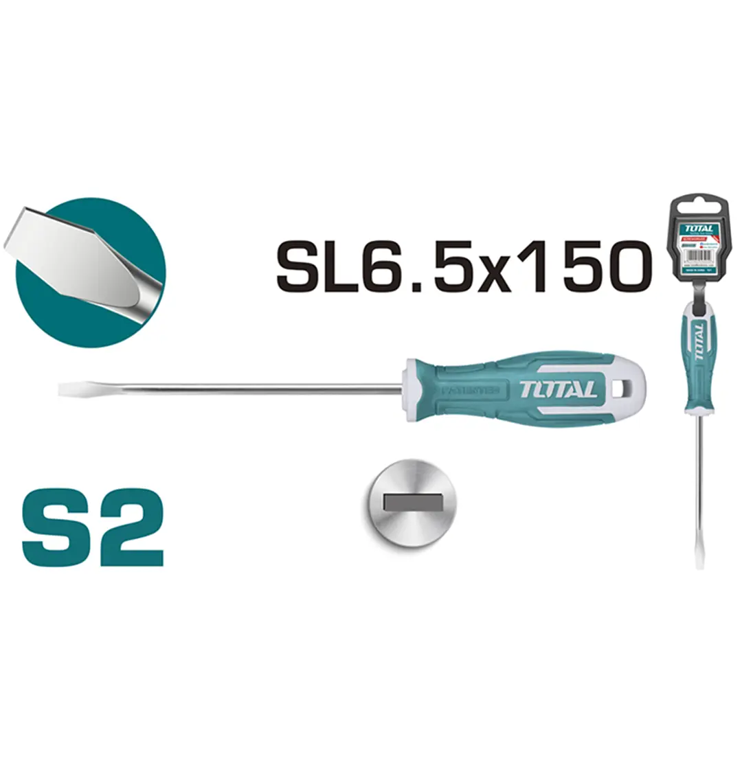 Estos desarmadores planos ofrecen un agarre cómodo gracias a su mango ergonómico Comfort Grip. Con una medida de 1/4″ x 6″ (150 mm), son ideales para trabajos que requieren mayor alcance y torque. Su diseño resistente asegura durabilidad y un rendimiento confiable.