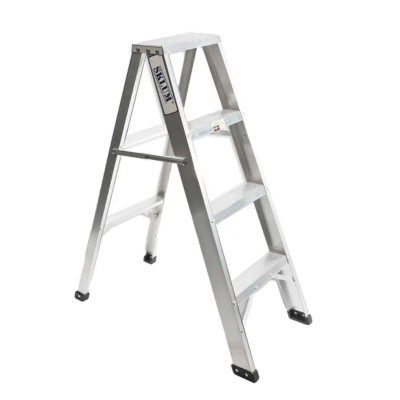 Escalera tipo tijera con 4 peldaños, diseñada para soportar hasta 120 kg. Altura máxima de 1.14 metros. Ideal para trabajos domésticos o profesionales que requieren estabilidad, seguridad y fácil manejo en espacios medios.