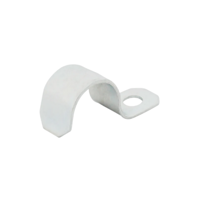 Grapa para tubo conduit de 3/8″ en PVC, ideal para asegurar tubería eléctrica ligera con una instalación rápida y segura.