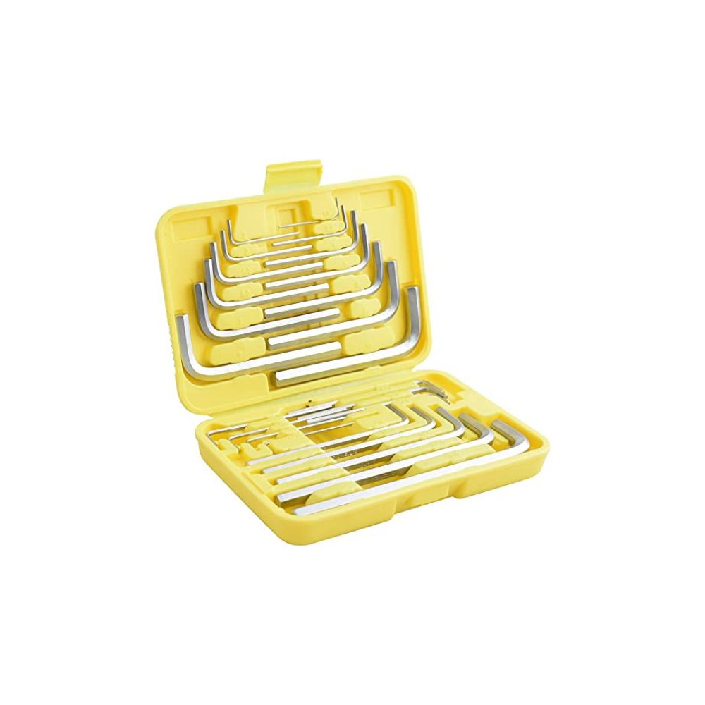 Juego de llaves Hexagonales con 25 piezas fabricadas en acero cromo vanadio las cuales cuentan con puntas achaflanadas que permiten un rápido acople al tornillo, sirve para atornillar y encajar cualquier tornillo con acabado en su cabeza de forma hexagonal, se encaja en los tornillos que tiene un interior en forma hexagonal y se utiliza para que cuando encajes se ajuste completamente con la cabeza del tornillo hexagonal y pueda atornillar el tornillo a la superficie.
