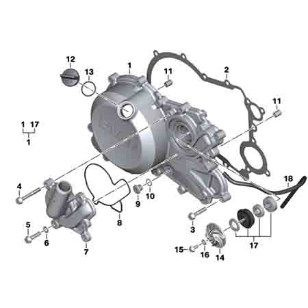 El juego de retenedores de la bomba de agua BMW Motorrad G310GS / G310R, corresponde al item # 17 de la imágen.
