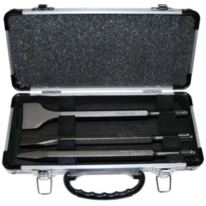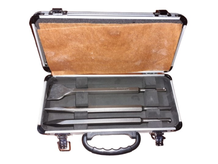 Set de demolición para SDS-PLUS. Pequeño maletín con puntero cincel y espátula.