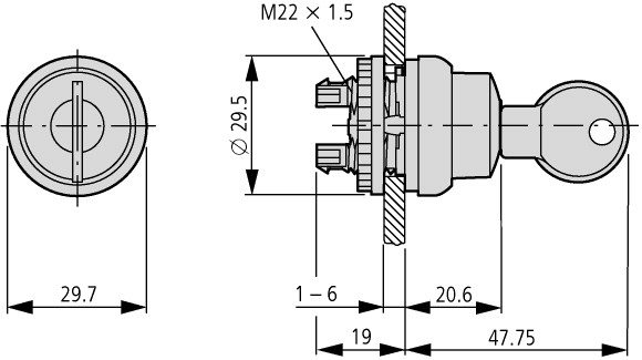 M22-WS 216881 EATON-MOELLER ACTUADOR ACCIONADO POR LLAVE MOMENTÁNEO 2 POSICIONES