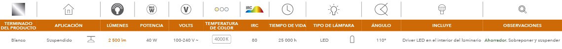 Neiva | INTERIOR SUSPENDIDOS LED40W100-240V4000K | Tecnolite