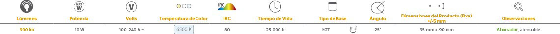 Pegasus I | LAMP LED PARES 10W100-240V6500KE27900LM | Tecnolite