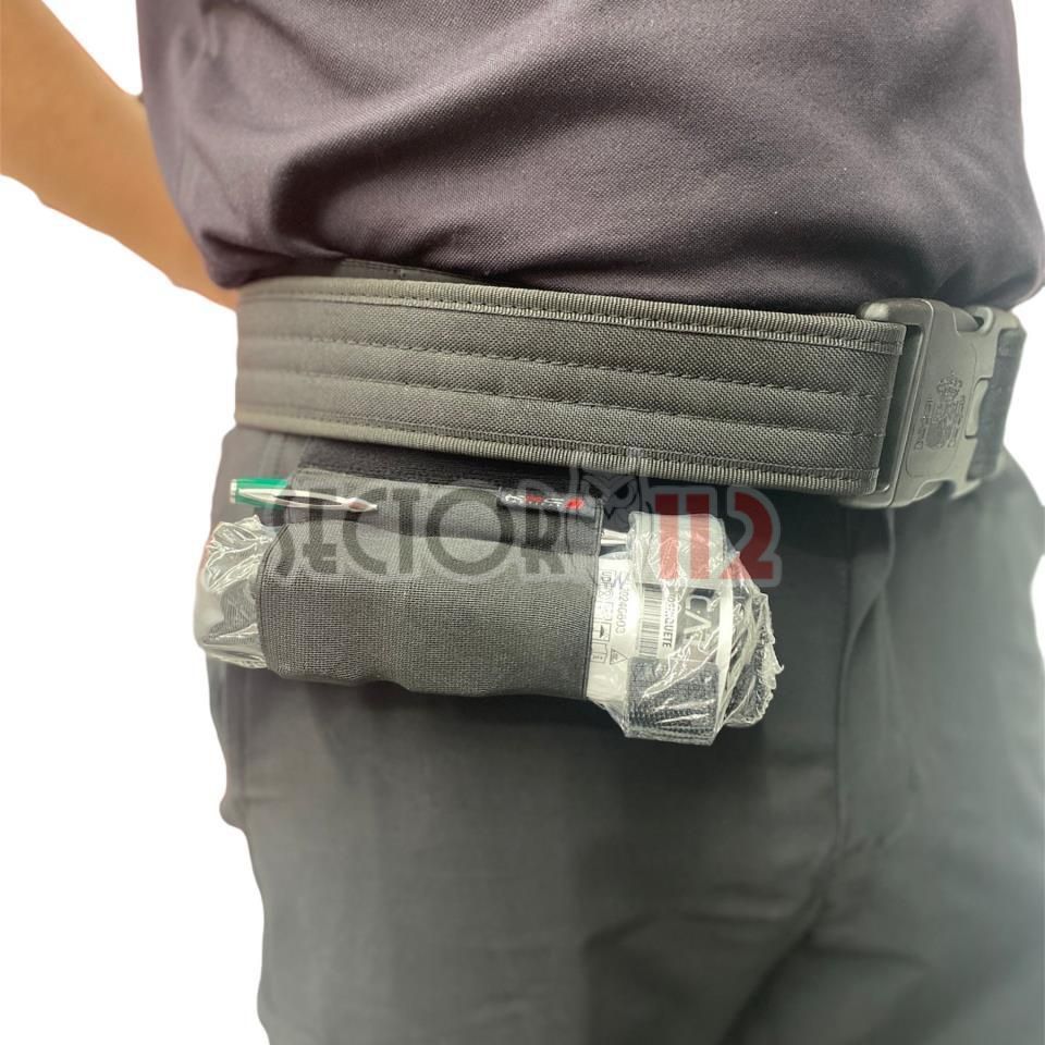 Confeccionado con material elástico y velcro macho y hembra,con dos compartimentos de distinto diametro, te permitirá colocarlo de múltiples formas, tanto en tu cinturón policial de velcro (ya sea macho o hembra) como en tu chaleco antibalas, tanto vertical como horizontal.