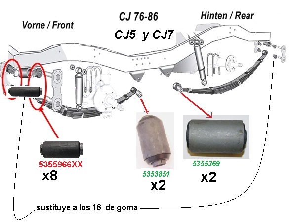 SET DE 12 PIEZAS BUJES PARA CJ5 CJ7 1976 AL 1986