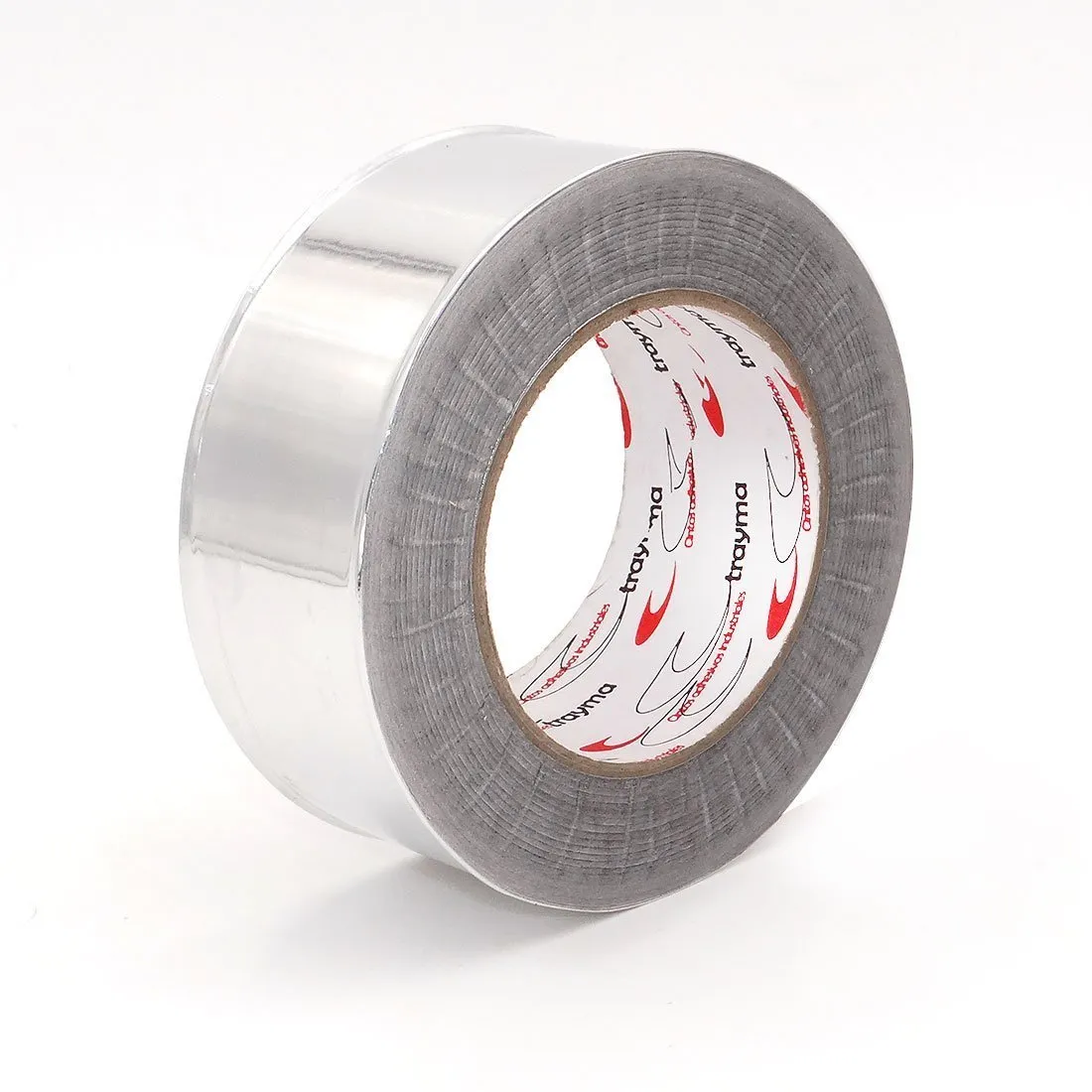 Lámina de aluminio de 50 micras y adhesivo base caucho con protector de papel siliconado.